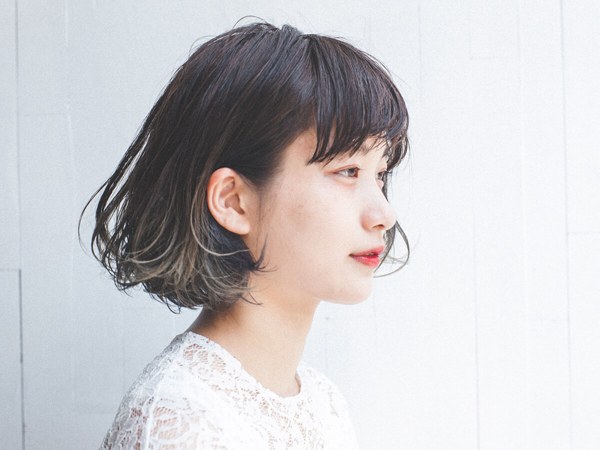 グラデーションカラー。毛先にブリーチしたら上からグレー系のカラーをかぶせる。
